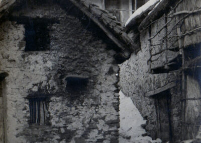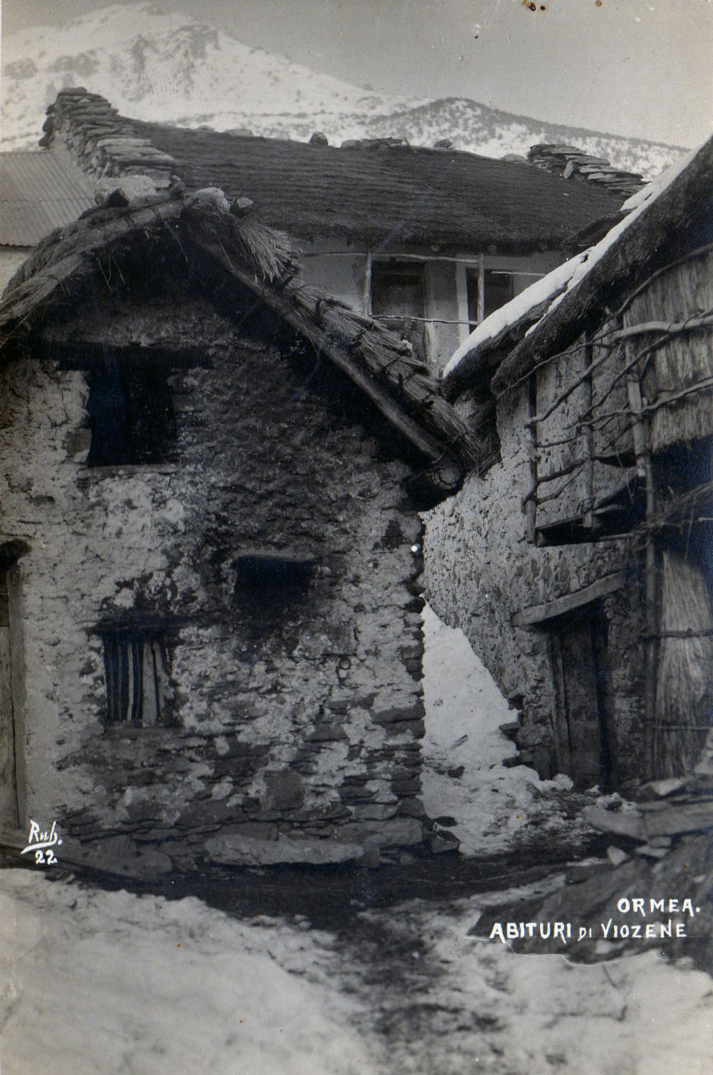 Chiunque si rechi oggi a Viozène, si troverà di fronte ad un paese dall’immagine, se non elegante, quanto meno dignitosa. Le stalle, che un tempo erano disseminate un po’ per tutto l’abitato, non ci sono più, trasformate come sono state negli anni, al pari delle abitazioni, in confortevoli e talora civettuole seconde case, ove trascorrere sereni periodi di villeggiatura, prevalentemente nel mese di Agosto (fig. 2). Le ristrutturazioni effettuate hanno anche portato alla completa sostituzione dei tetti di paglia con più moderni e rassicuranti tetti in lamiera o tegole. Fino alla seconda metà del secolo scorso i tetti di paglia costituivano una nota caratteristica del paese, che ne accentuava il tono dimesso e povero, tant’ è che più che di abitazioni si parlava di “abituri” (fig. 3), in una sorta di contaminazione linguistica tra abitazioni e tuguri. Come tipo di paglia, veniva in genere utilizzata quella di segale, preferita sia alle ciape (lastre di pietra) perché più leggera, isolante e più facile da porre in opera, sia alla paglia di grano, che tendeva a marcire in breve tempo.